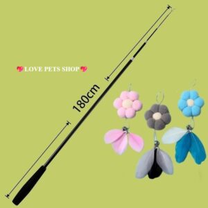 🌸 Cần câu Mèo siêu dài gắn bông hoa lông vũ – chiều dài tối đa 1.8m🐾