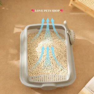 👉 Thành chậu cao giúp hạn chế cát bắn ra ngoài khi mèo đi vệ sinh