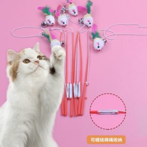 – Đầu dây gắn chuột sắc màu kèm chuông lục lạc nhỏ, phát ra tiếng leng keng vui tai thu hút mèo chơi đùa hứng thú