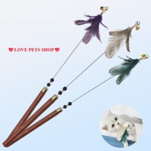 🎣 Đồ chơi cần câu Mèo gắn lông vũ tay cầm gỗ 🐱🪶